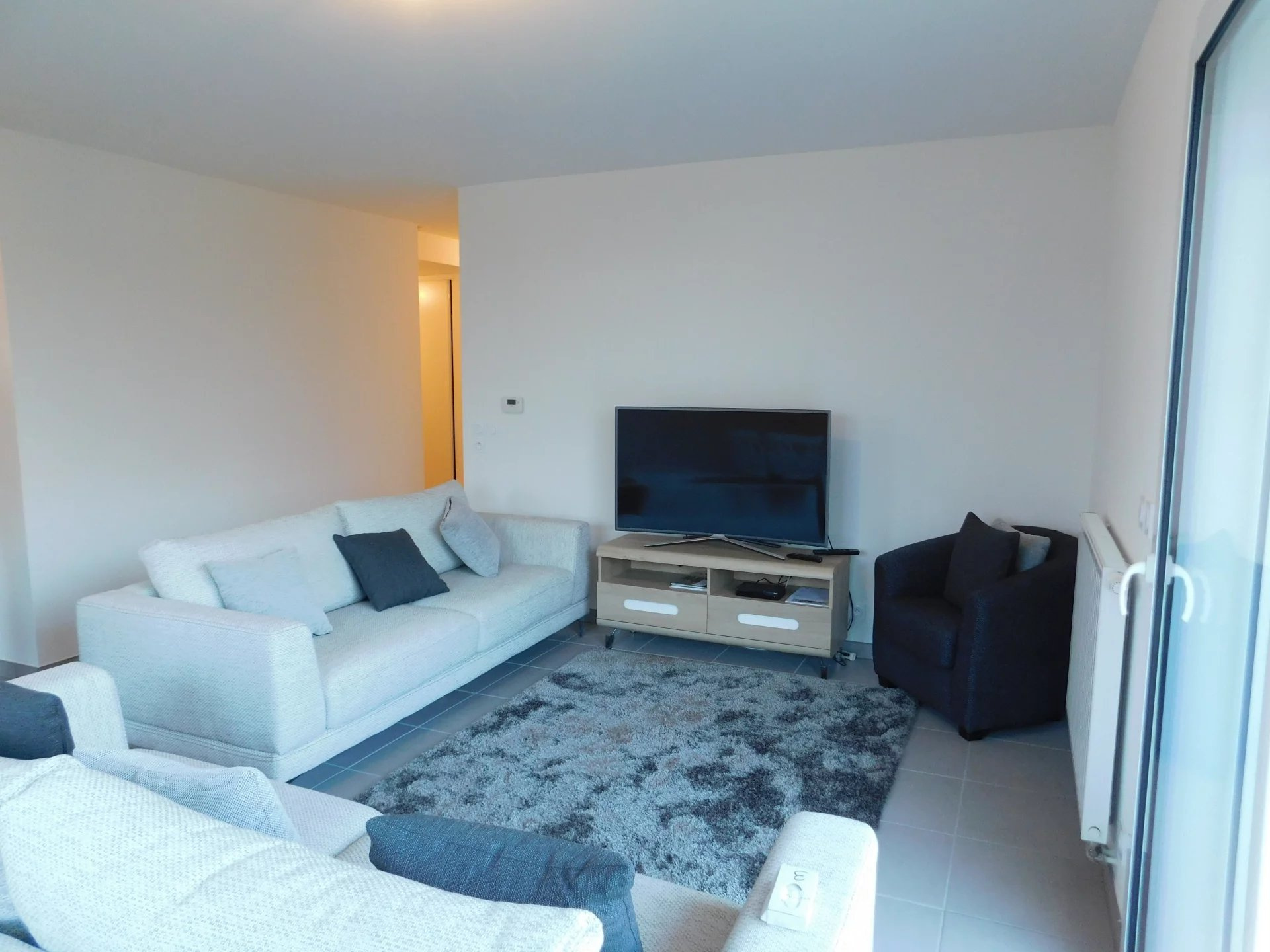 Located in a quiet, modern residence close to local shops, 5 minutes from Evian and Thonon and one hour from Geneva. This 72.39 sq m (Carrez law) 2-bedroom apartment offers a 182 sq m garden, a 12.5 sq m terrace, a cellar, a garage, and an additional parking space. The layout is as follows: entrance hall (7 sq m), separate WC with washbasin (3 sq m), open-plan fitted kitchen/living room (26.60 sq m) with access to the terrace and garden, a bedroom with built-in wardrobe (9.53 sq m), a second bedroom (11.76 sq m), a bathroom (5.20 sq m) with walk-in shower, and a laundry cupboard. Don’t miss out!