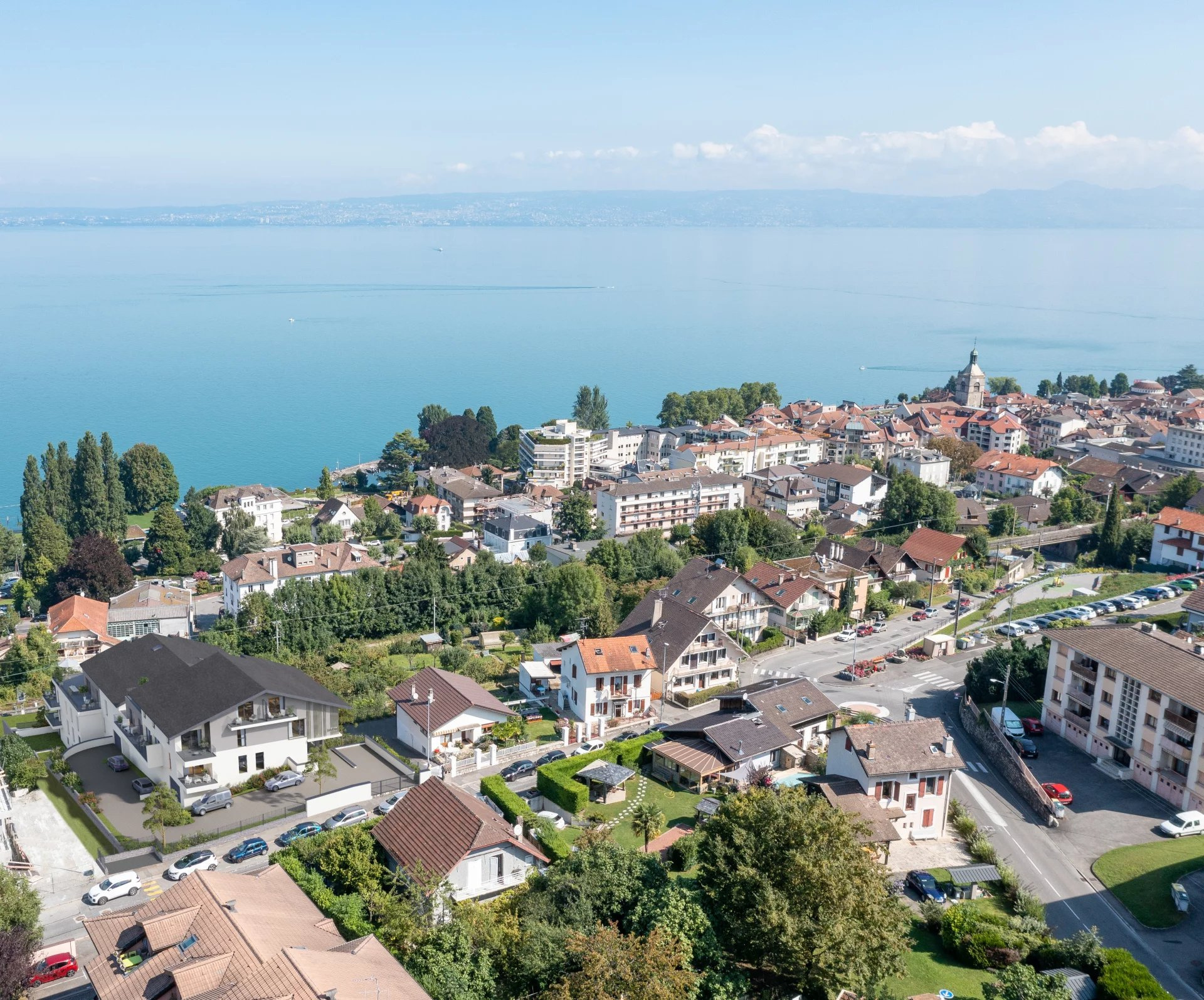Exceptional penthouse with panoramic terrace overlooking Lake Geneva? Rare opportunity! Just steps from the train station and ferry terminal, this magnificent, immaculate penthouse will captivate you with its prime location and high-end amenities. With 125 sq m of living space, it offers a spacious, light-filled living area that extends onto a sumptuous 68 sq m lake-facing terrace, ideal for enjoying moments of relaxation while taking in breathtaking views. The fully fitted and equipped kitchen combines contemporary design with functionality. The sleeping area comprises four comfortable bedrooms, including a master suite, perfectly arranged to offer both comfort and privacy. Two parking spaces complete this rare property, located on the top floor of a very recent building. A unique property combining generous proportions, spectacular views, and a high quality of life. A rare penthouse for discerning buyers seeking an exceptional property on the shores of Lake Geneva.